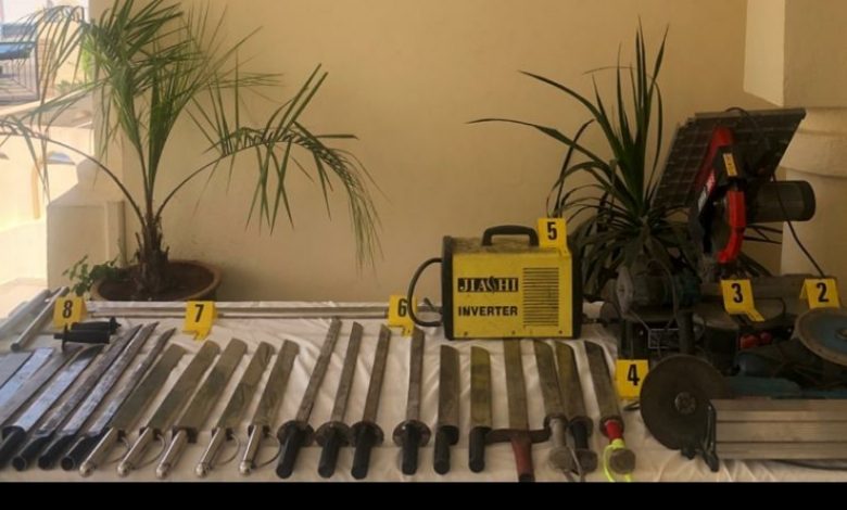 وقد مكنت عمليات التفتيش التي تم تنفيذها بمجموعة من ورشات الحدادة بأحياء سيدي بوجيدة وعوينات الحجاج والمدينة القديمة بمدينة فاس، عن حجز ما مجموعه 21 سيفا من الحجم الكبير ومجموعة من الأدوات المستعملة في تقطيع المعادن والحديد ولحمها وتجهيزها لهذه الأنشطة الإجرامية.