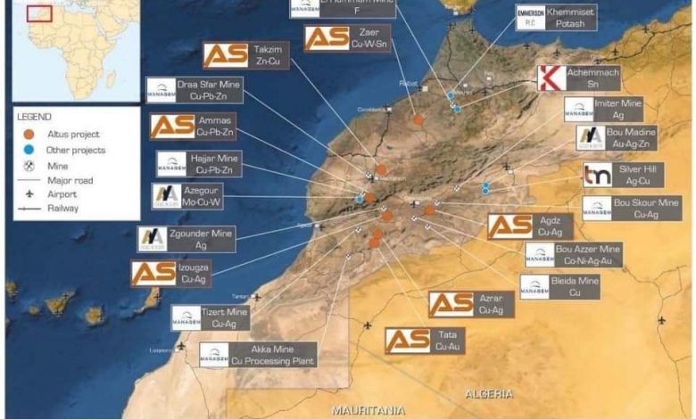 أعلنت شركة “ألتوس ستراتيجيز” البريطانية، المتخصصة في التنقيب عن المعادن، أنها رصدت احتياطات مهمة من النحاس والفضة عالية الجودة بثلاث مواقع استكشافية بالمغرب تمتد على مساحة 252 وهي؛ أزرار وإزوكزا وطاطا.
