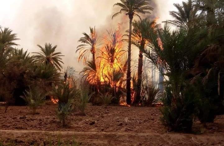 و تشهد مجموعة من الواحات بهذه المنطقة حرائق مهولة في الآونة الأخيرة بسبب إرتفاع درجة الحرارة المفرطة .