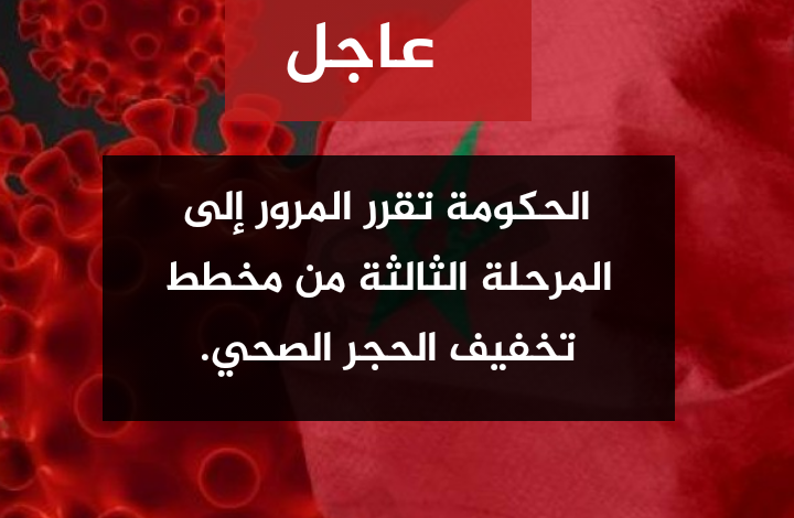 عاجل الحكومة تقرر المرور إلى المرحلة الثالثة من مخطط تخفيف الحجر الصحي.