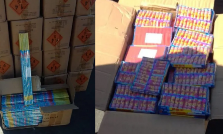 و ذكر بلاغ للأمن الوطني أن إجراءات التفتيش التي باشرتها عناصر الجمارك والشرطة قد مكنت من ضبط الشهب والمفرقعات النارية المهربة ملفوفة داخل أكياس بلاستيكية ضمن حاوية للبضائع، تحتوي على أكياس مماثلة تضم بداخلها سلع وبضائع أخرى مصرح بها وهي عبارة عن مواد علفية مستوردة من الخارج.