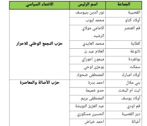 هذا وجاءت نتائج انتخاب رؤساء هذه الجماعات على الشكل التالي :
