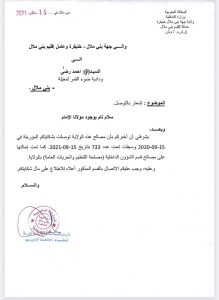 في انتظار جوابكم، تقبلوا السيد الوالي فائق الإحترام والتقدير، والسلام.