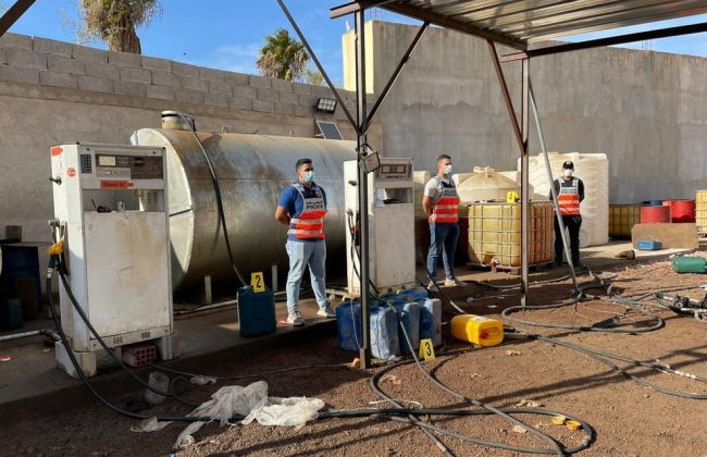 وجرى توقيف اثنين من المشتبه فيهما على متن سيارة نفعية بمدخل مدينة الناظور، وبحوزتهما تم حجز 1200 لتر من وقود الكازوال معبأة ضمن براميل من سعة 30 لتر، قبل أن تقود عملية أمنية إلى حجز 6780 لترا إضافية من هذا الوقود ومضخات وحاويات للتخزين بمستودع بمنطقة “سلوان”، يديره المشتبه فيه الثالث.