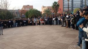 وانطلق الشكل الاحتجاجي، حوالي الساعة الرابعة مساءً، بوقفة في ساحة المسيرة، ردد خلالها المحتجون شعارات مطالبة بإسقاط الشروط التي اعتمدتها وزارة التربية والتعليم الاولي والرياضة، في مباراة توظيف الأساتذة وأطر الاكاديميات.