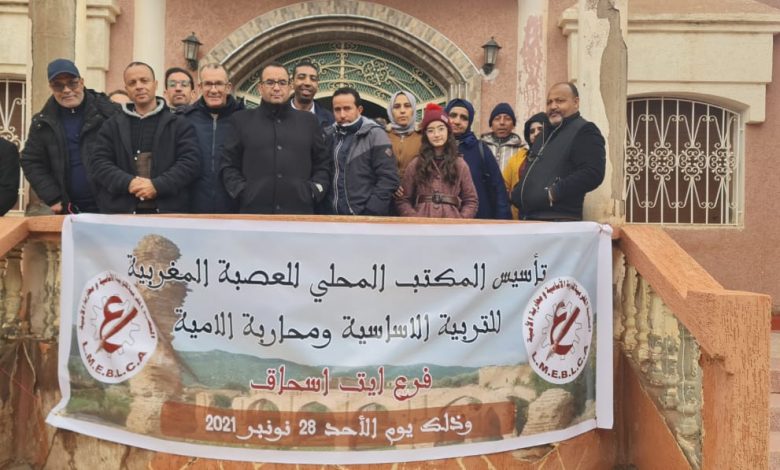انعقد بدار الضيافة بجماعة ايت اسحاق اقليم خنيفرة ، صباح اليوم الأحد 28 نونبر 2021 ،الجمع العام التأسيسي للعصبة المغربية للتربية الأساسية ومحاربة الأمية فرع ايت اسحاق ، ترأسه الأخ هشام احرار عضو المكتب التنفيذي ومنسق جهة بني ملال خنيفرة للعصبة المغربية للتربية الأساسية ومحاربة الأمية ، وبحضور الاخ عزالدين ابغى كاتب فرع العصبة المغربية بجماعة واويزغت والاخت ليلى ايت يدير عضوة مكتب العصبة المغربية ، هشام منصوري عضو اللجنة التحضيرية وفعاليات عن المجتمع المدني بالجماعة.