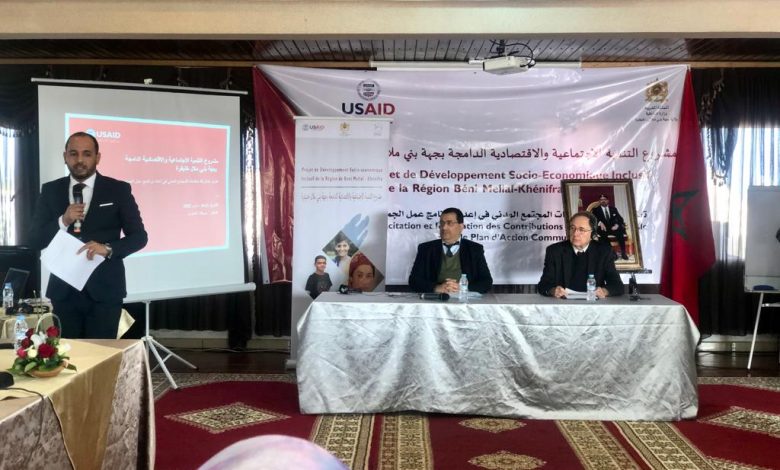 نظم مشروع التنمية الاجتماعية والاقتصادية الدامجة بجهة بني ملال خنيفرة من 21 إلى 24 مارس 2022 ورشة تكوينية لفائدة 35 جماعة من جهة بني ملال خنيفرة وقسم الجماعات المحلية لعمالة خريبكة، تحت شعار ” تعزيز مشاركة منظمات المجتمع المدني في إعداد برنامج عمل الجماعة”.