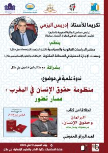 وتأتي هذه الندوة تكريما للأستاذ ادريس اليزمي ،رئيس المجلس الوطني لحقوق الانسان سابقا