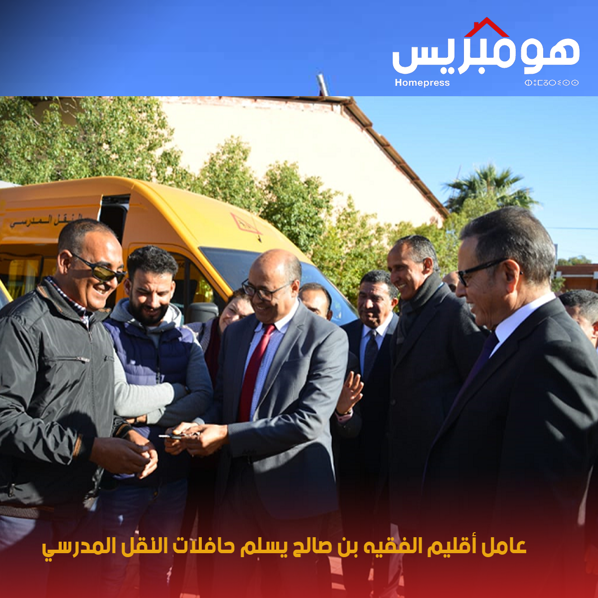 وقد قام عامل الإقليم، رفقة مدير موقع خريبكة للمجمع الشريف للفوسفاط، بتسليم مفاتيح ست حافلات للنقل المدرسي بمثابة هبة من المكتب الشريف للفوسفاط، لفائدة جمعيات تابعة لجماعات بني وكيل، والخلفية، والكريفات، وبرادية.