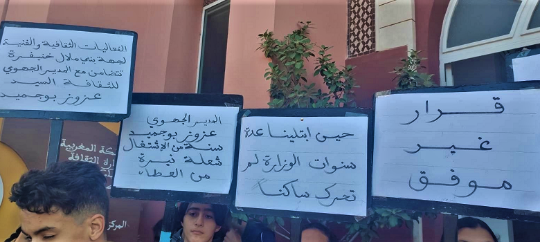 وكانت عدد من الفعاليات، نظمت يوم السبت وقفة امام المديرية، معبرة فيها عن امتعاضها وتنديدها واستنكارها لهذا القرار، غير المفهوم، خاصة ان المدير الجديد، لم تمر على تعيينه غير سنة، وهي المدة التي كانت غنية بوافر من الأنشطة الثقافية والفنية بجهة بني ملال خينفرة.
