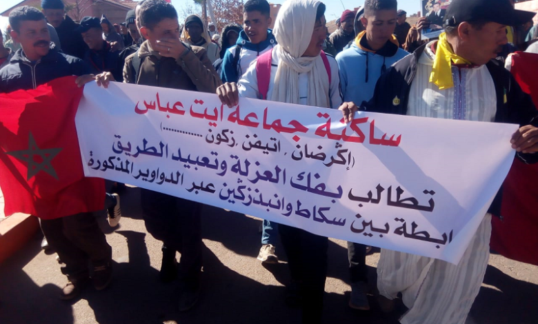 تظاهر الإثنين، العشرات من المواطنين من جماعة أيت عباس، في مسيرة احتجاجية مشيا على الأقدام نحو عمالة إقليم أزيلال للمطالبة بتعبيد وإصلاح مقطع طرقي.