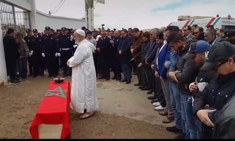 شيع جثمان الشرطي ضحية الاعتداء الهمجي، مساء الجمعة 03 مارس تلجاري، بمقبرة الزيتونة بليساسفة نواحي مدينة الدار البيضاء، في جو مهيب.