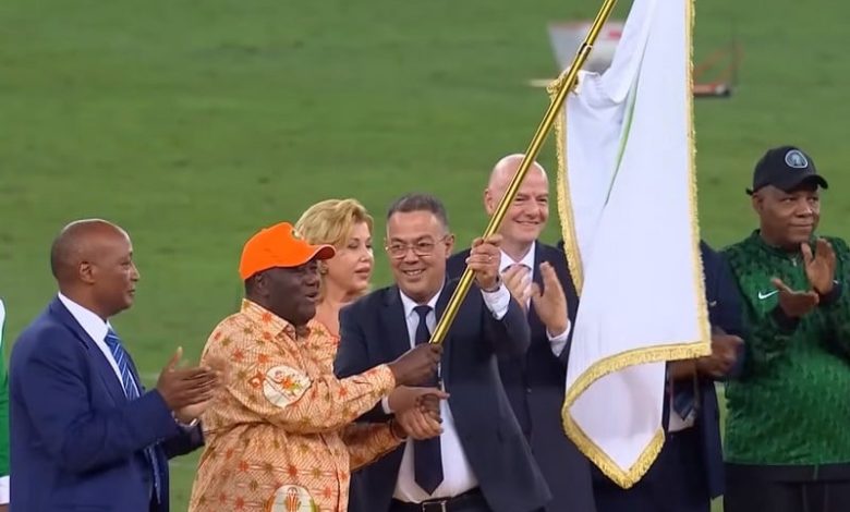 وجرت عملية تسليم علم الـ”كان” إلى فوزي لقجع، عقب نهائي كأس إفريقيا للأمم (كوت ديفوار 2023)، الذي أقيم على ملعب الحسن واتارا الأولمبي بمدينة إيبيمبي شمال أبيدجان، بحضور رئيس الكونفدرالية الإفريقية لكرة القدم (كاف)، باتريس موتسيبي، و رئيس الإتحاد الدولي لكرة القدم (فيفا)، جياني إنفانتينو.