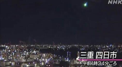 وقال تلفزيون إن إتش كي العام، إن كاميراته في محافظات أيشي، و مي الوسطى و أماكن أخرى، التقطت كرة النار في السماء الجنوبية، كما ذكرت صحيفة “أساهي” المحلية، أن كاميرا في ميناء ناجويا أظهرت النيزك يتألق مثل البدر عندما اقترب من الأرض، و قال الخبراء أن سرعة النيزك بلغت 54 ألف كلم في الساعة، بينما تم رصد قطره بنحو 60 سم و وزن يصل 350 كغ و أضافوا أن شظايا صغيرة من النيزك ربما وصلت إلى الأرض.