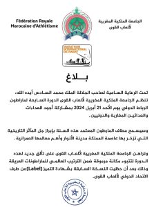 وكشفت الجامعة في بلاغ لها توصل“هومبريس” بنسخة منه، أن المارطون السالف الذكر سيتم تنظيمه يوم الأحد 21 أبريل 2024، تحت الرعاية السامية لصاحب الجلالة الملك محمد السادس.