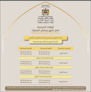 وأشارت المذكرة الوزارية إلى إمكانية تكييف هذه الأوقات وفق الخصوصيات المجالية لكل جهة بإحترام الزمن المدرسي و زمن التعلم.