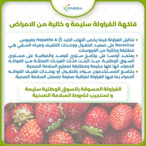 وجاء في بلاغ رسمي صادر عن المكتب أن “تحاليل الفراولة فيما يخص فيروس التهاب الكبد (A) و فيروس Novovirus، على صعيد الحقول و وحدات التلفيف و مياه السقي، مطابقة و خالية من الفيروسات”.