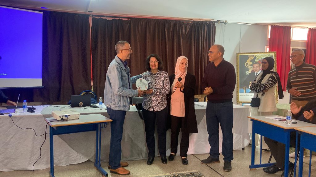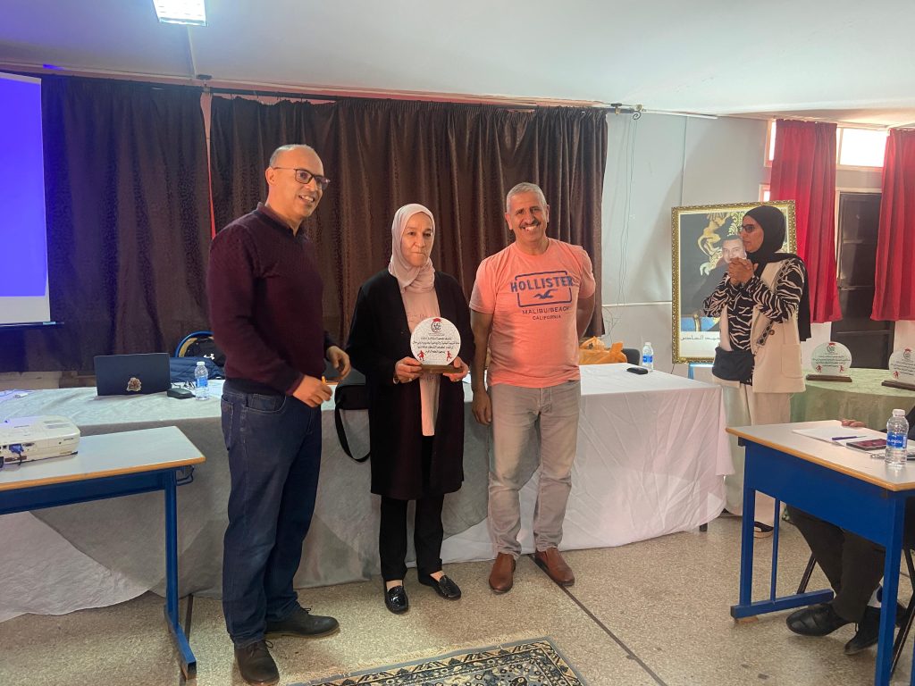 وبعد ختام العرض والتفاعل مع تساؤلات ومداخلات الحضور، جرى حفل تكريم كل من الاستاذتين المتقاعدتين، رشيدة سرير ونعيمة البوعبيدي والأستاذ عبد الله البوعلاوي، تقديرا و إجلالا لما قدموه من تضحيات و جهود طيلة مسارهم المهني.