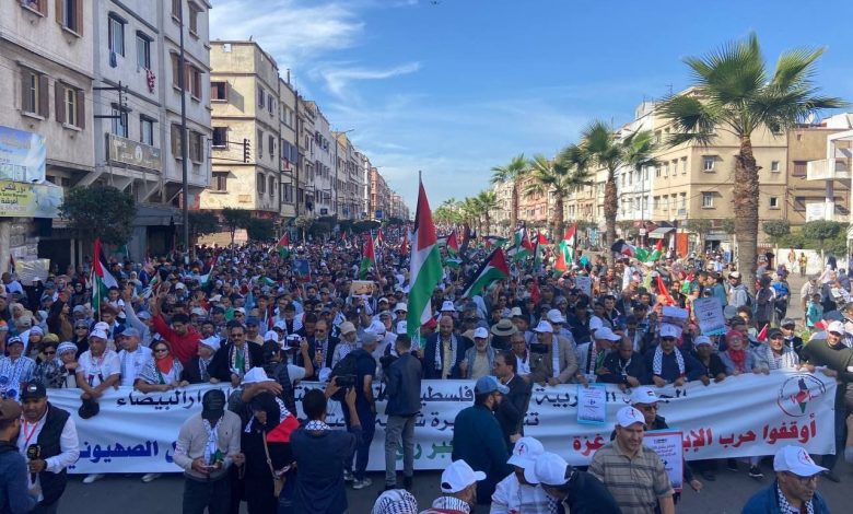 دعت الجبهة المغربية لدعم فلسطين ومناهضة التطبيع، إلى إقامة مسيرة وطنية كبرى في مدينة الدار البيضاء يوم الأحد الموافق 19 مايو الجاري، للتنديد بالإبادة الجماعية التي يرتكبها الاحتلال الإسرائيلي في قطاع غزة.