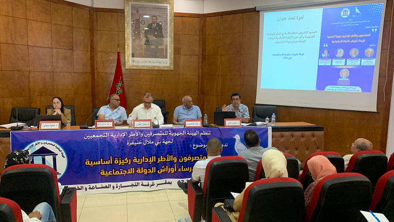 من جانبه، أشار عبد الصادق مرشد، رئيس الهيئة الوطنية للمتصرفين والأطر الإدارية للتجمعيين، إلى أن الهيئة تمثل فضاءً للحوار وتبادل الخبرات بين المتصرفين، مشددًا على أهمية دورهم في صياغة القرار الإداري وتطوير المنظومة التشريعية والرقابية، بما يسهم في تقييم السياسات العامة للبلاد.