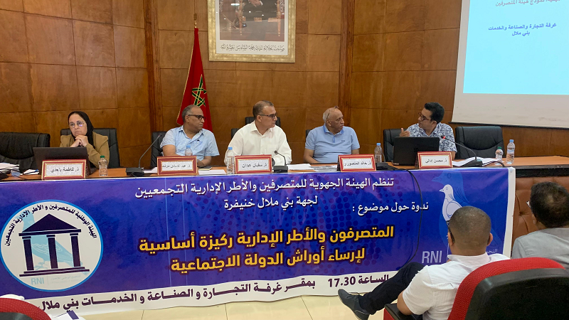 نظمت الهيئة الجهوية للمتصرفين والأطر الإدارية للتجمعيين بجهة بني ملال خنيفرة، ندوة مهنية تحت عنوان “المتصرفون والأطر الإدارية: ركيزة أساسية لإرساء أوراش الدولة الاجتماعية”، وذلك بمقر غرفة التجارة والصناعة والخدمات بالجهة.