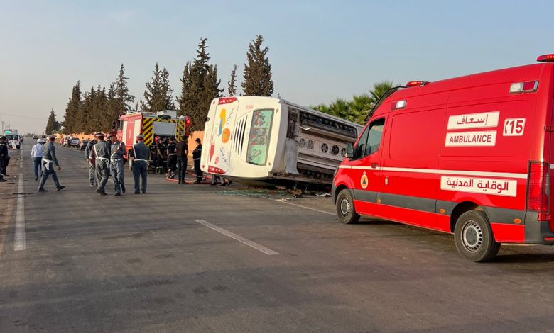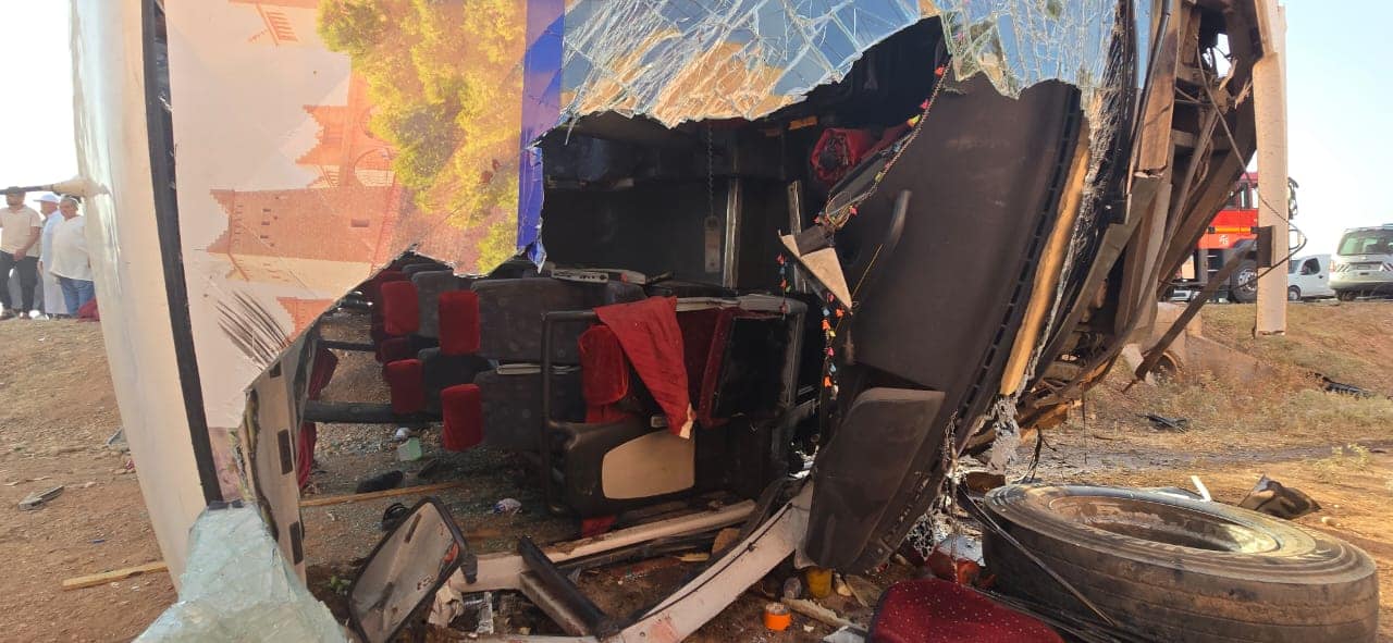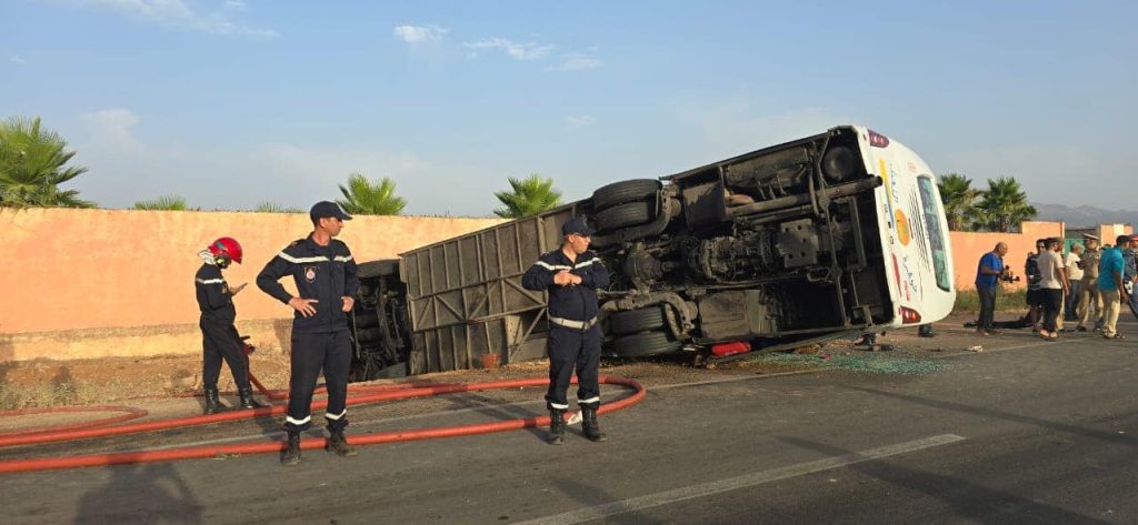 وأوضحت مصادرمطلعة’’ أن الحادثة وقعت إثر انقلاب حافلة لنقل المسافرين، كان على متنها 52 من الركاب، عقب اصطدامها بسيارة خفيفة. وأسفر التصادم عن وفاة سيدتين، إحداهما حامل في مكان الحادث.