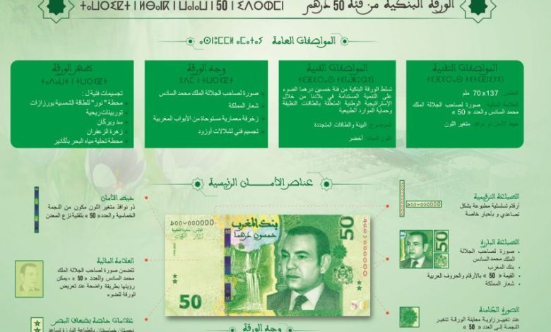 بنك المغرب يُطرح للتداول ورقة بنكية جديدة من فئة 50 درهماً تخليداً لذكرى عيد العرش