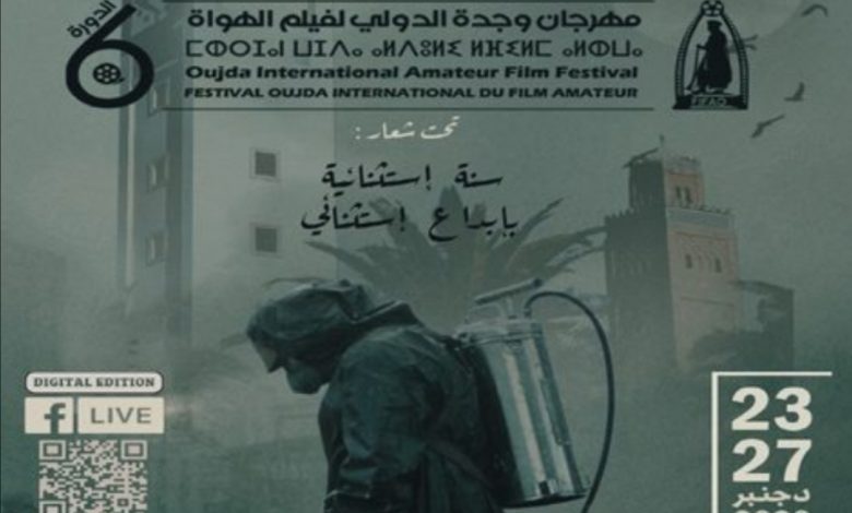 حسب ما أفاد به منظمي فعاليات الدورة السادسة لمهرجان وجدة الدولي لفيلم للهواة، فستنظم دورة هذه السنة بصيغة افتراضية، خلال الفترة بين 23 و 27 دجنبر الجاري , والتي ستنظمها جمعية رسالة الفن للتنمية والإبداع، تحت شعار “سنة إستثنائية بإبداع إستثنائي”.