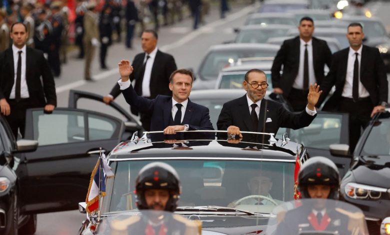 وعند مرور الموكب الملكي، تعالت هتافات جموع المواطنين بحياة جلالة الملك، و بعبارات الترحيب بفخامة الرئيس إيمانويل ماكرون، مشيدة بالصداقة العريقة و المتميزة القائمة بين المملكة المغربية و الجمهورية الفرنسية.