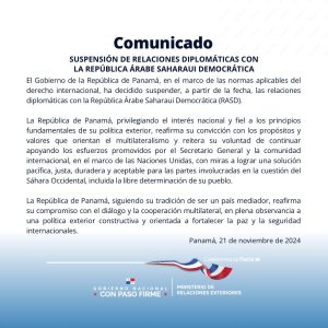 قررت جمهورية بنما، تعليق علاقاتها الدبلوماسية مع “الجمهورية الصحراوية” الوهمية.