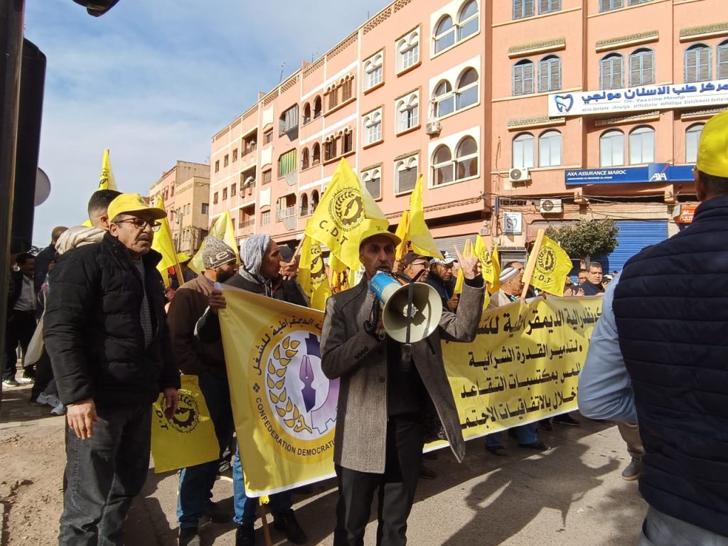 وفي كلمة بالمناسبة عبر محمد حطاطي كاتب الاتحاد الإقليمي للكونفدرالية ببني ملال على رفض الكونفدرالية للقانون التكبيلي للإضراب لما يحمله من مس خطير بالحريات النقابية وبالحق في ممارسة الإضراب، مشيرا أنه وقع تهريب المشروع من طاولة الحوار الاجتماعي إلى البرلمان للاستقواء بالأغلبية النيابية، وأكد أن الاحتجاج مستمر للتراجع عن هذا المشروع.