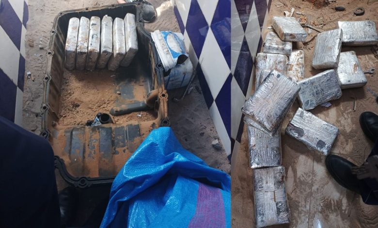وقد مكنت عملية المراقبة الحدودية وإجراءات التفتيش التي شاركت فيها الكلاب المدربة للشرطة عن ضبط شحنات المخدرات مخبأة بعناية في محركي شاحنتين للنقل الدولي للبضائع، تحملان لوحات ترقيم مغربية، كانتا قادمتين من إحدى دول إفريقيا جنوب الصحراء، علاوة على ضبط سائقيهما البالغين من العمر 24 و 47 سنة.