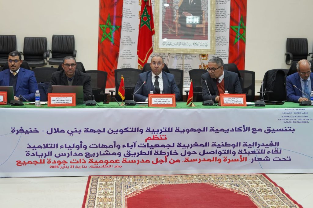 احتضنت الأكاديمية الجهوية للتربية والتكوين بجهة بني ملال-خنيفرة، يوم الجمعة 31 يناير 2025، لقاء وطنياً نظمته الفدرالية الوطنية المغربية لجمعيات آباء وأمهات وأولياء التلاميذ، وذلك في إطار جهود الأكاديمية لتعزيز التواصل والانفتاح على شركاء المنظومة التربوية.