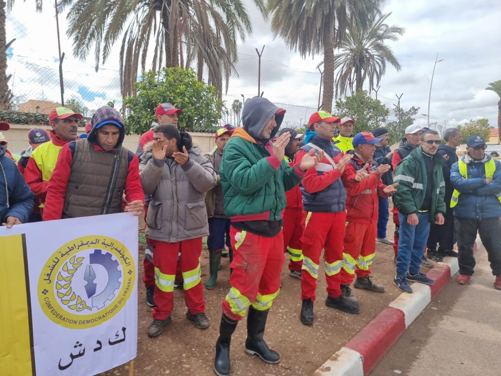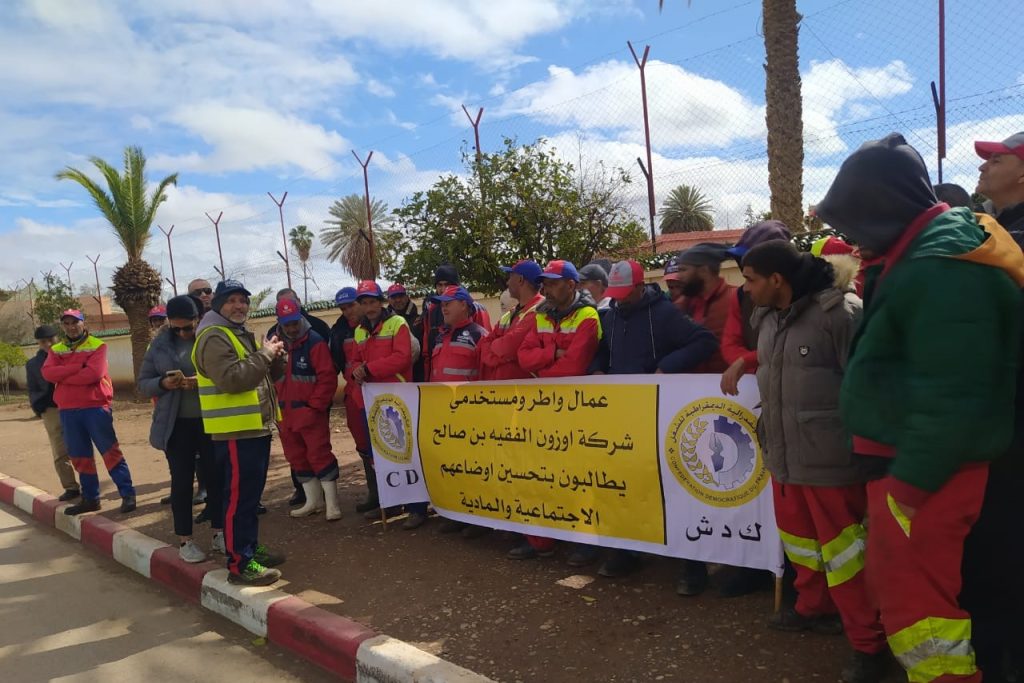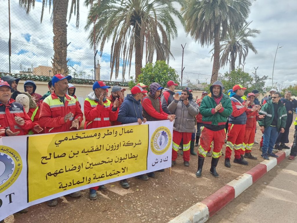 نظم عمال شركة “أوزون” بمدينة الفقيه بن صالح صباح يومه الأربعاء وقفة إحتجاجية إنذارية، أمام مقر عمالة الإقليم، و ذلك بدعم من الإتحاد المحلي للكونفدرالية الديمقراطية للشغل (CDT) و المكتب الإقليمي للنقابة الوطنية للجماعات و التربية و التدبير المفوض.