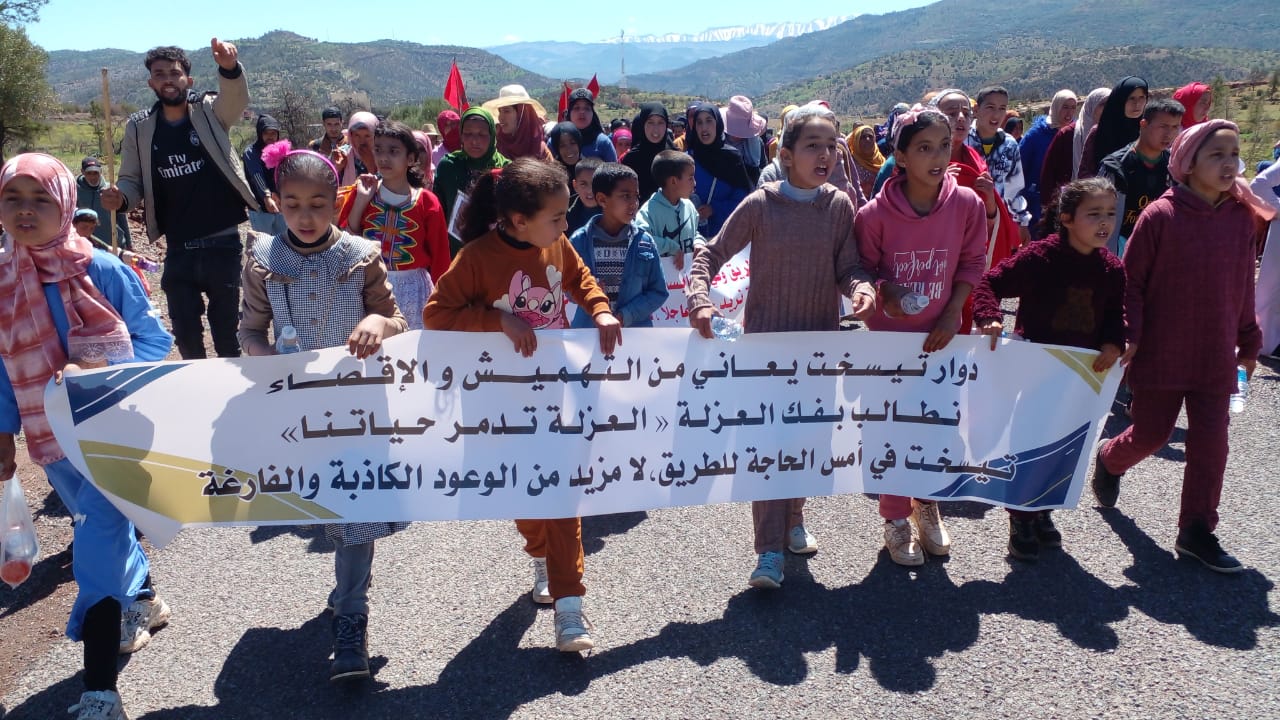 خرج العشرات من سكان دوار تيسخت، التابع لجماعة آيت ماجدن بإقليم أزيلال، صباح اليوم الخميس، في مسيرة إحتجاجية نحو مقر الجماعة ومنها الى العمالة، للمطالبة بإصلاح الطريق التي تربطهم بالمناطق المجاورة.