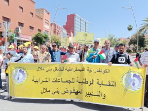 احتشد مئات العمال والعاملات والمواطنين صباح الخميس فاتح ماي 2025، في شوارع مدينة بني ملال، استجابة لدعوة الاتحاد الإقليمي للكونفدرالية الديمقراطية للشغل، لتخليد عيد الشغل الأممي بمسيرة عمالية وشعبية رفعت شعارات غاضبة ضد الأوضاع الاجتماعية المتردية، وضد السياسات الحكومية التي اعتبروها “لاشعبية ولا ديمقراطية”.