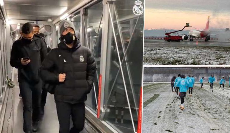 ظلت بعثة ريال مدريد على متن الطائرة لأكثر من ساعة منذ الحين الذي كان من المفترض أن تقلع فيه الطائرة، بسبب الثلوج. و حول ذلك، قالت صحيفة ”ماركا“ الإسبانية و المقربة من أسوار النادي الملكي إنه لا يوجد مدرج طائرات لا تغطيه الثلوج الكثيفة في الوقت الحالي.