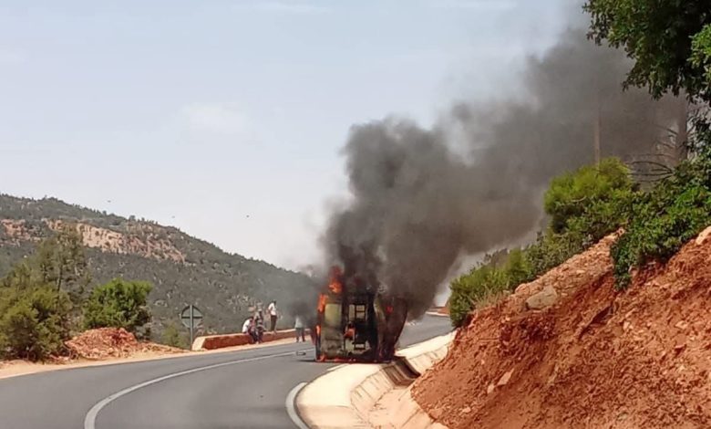 شبّ حريق مُهول، صباح يومه الأربعاء، في سيارة تاجر ملابس (ترانزيت)، و ذلك على مستوى الطريق الوطنية رقم 25 الرابطة بين أفورار و أزيلال، و تحديداً بمنطقة “أساكا” التابعة لجماعة أيت وعرضى.