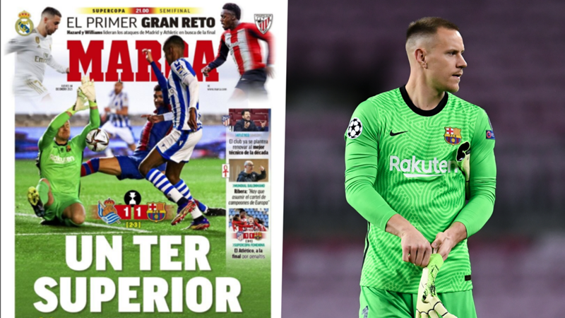 صحيفة ماركا الإسبانية تحدثت عن تألق تير شتيجن حارس مرمى برشلونة والذي قاد فريقه للصعود لنهائي السوبر الإسباني.