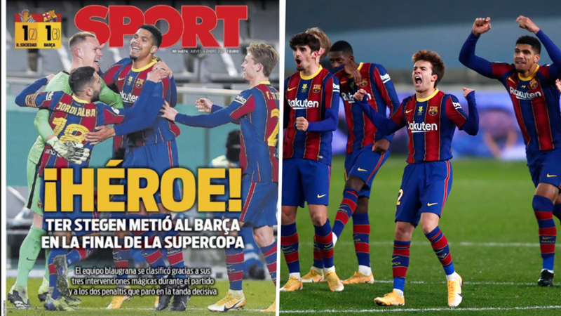 صحيفة موندو ديبورتيفو أبرزت انتصار برشلونة الصعب على ريال سوسيداد بركلات الترجيح بعد التعادل في الوقت الأصلي بهدف لكل فريق.