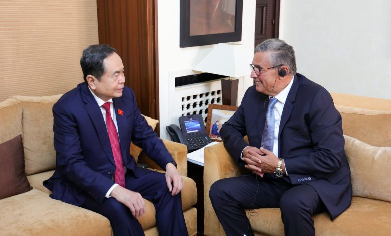 استقبل رئيس الحكومة المغربية، السيد عزيز أخنوش، يوم الجمعة 25 يوليوز 2025، رئيس الجمعية الوطنية الفيتنامية، السيد تران ثانه مان، في العاصمة الرباط، في إطار زيارة رسمية تهدف إلى تعزيز التعاون الثنائي بين البلدين، تحت القيادة الرشيدة لصاحب الجلالة الملك محمد السادس، نصره الله، والرئيس الفيتنامي لونغ كوونغ.