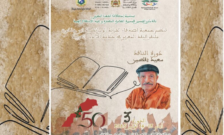 بمناسبة الذكرى الخمسين للمسيرة الخضراء المظفرة، والذكرى السبعين لعيد الاستقلال المجيد، تنظم جمعية أصدقاء المكتبة الوسائطية ابن خلدون بخريبكة، يومي 13 و14 نونبر 2025، الدورة الثالثة من ملتقى “النقد المغربي في خدمة الآداب العربية”، وهي دورة مخصصة للاحتفاء بالناقد المغربي الكبير الدكتور سعيد يقطين، وذلك برحاب خزانة القدس بخريبكة.