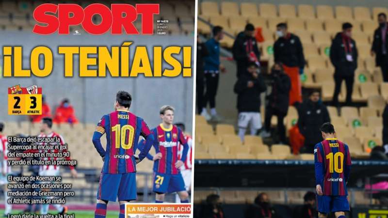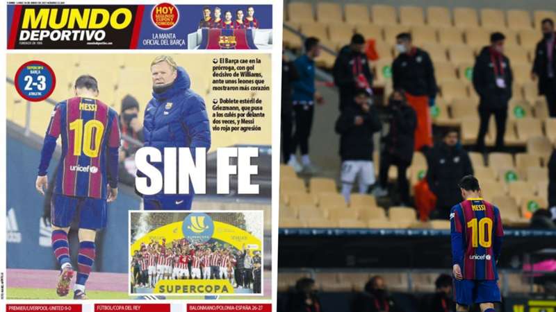 سقوط برشلونة في نهائي السوبر المحلي على يد بيلباو العنوان الرئيسي.