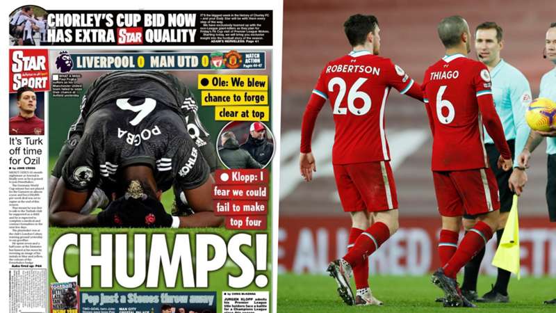 التعادل السلبي بين ليفربول و مانشستر يونايتد العنوان الرئيسي.