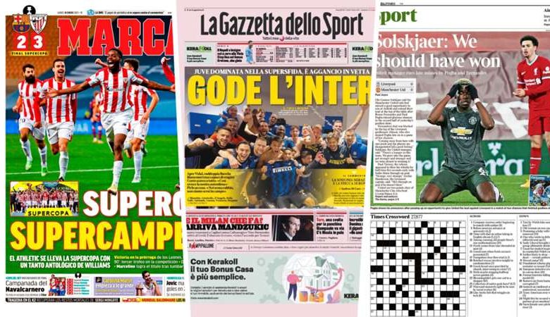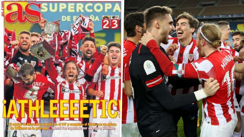 فوز أتلتيك بيلباو 3-2 على برشلونة و التتويج بالسوبر المحلي يحتل الغلاف.