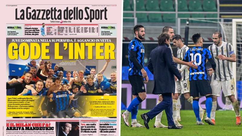 انتصار إنتر على يوفنتوس في ديربي إيطاليا 2-0 محور الحديث الرئيسي.