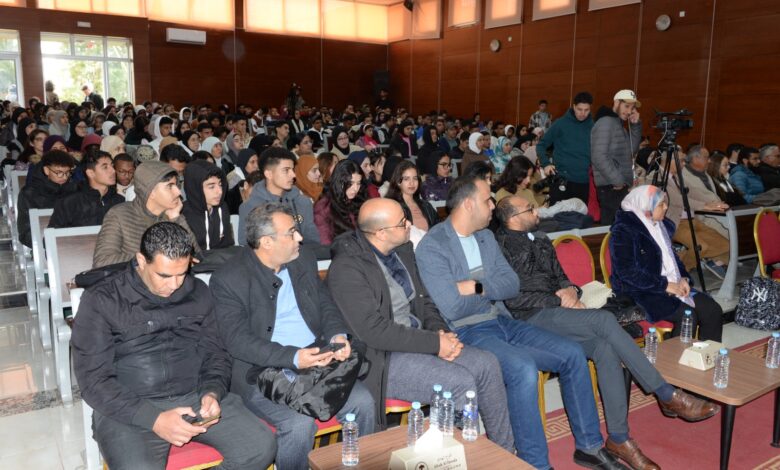 وفي كلمته الترحيبية، أكد مدير المؤسسة، الأستاذ المصطفى راكب، أن هذا الموعد الثقافي لا يمثل مجرد نشاط اعتيادي، بل يشكل فضاءً للتفاعل الإبداعي والتأمل النقدي، وفرصة لترسيخ ما تؤمن به الجامعة من دور معرفي وتنويري يسهم في قراءة الحاضر وصناعة المستقبل. كما توقف عند قيمة حضور ضيفي الشرف، المخرج المغربي عبد الرحمان التازي، والكاتبة والطبيبة والباحثة المتميزة غيثة الخياط، معتبراً مشاركتهما إضافة نوعية تغني النقاش وتوسع آفاق الطلبة.