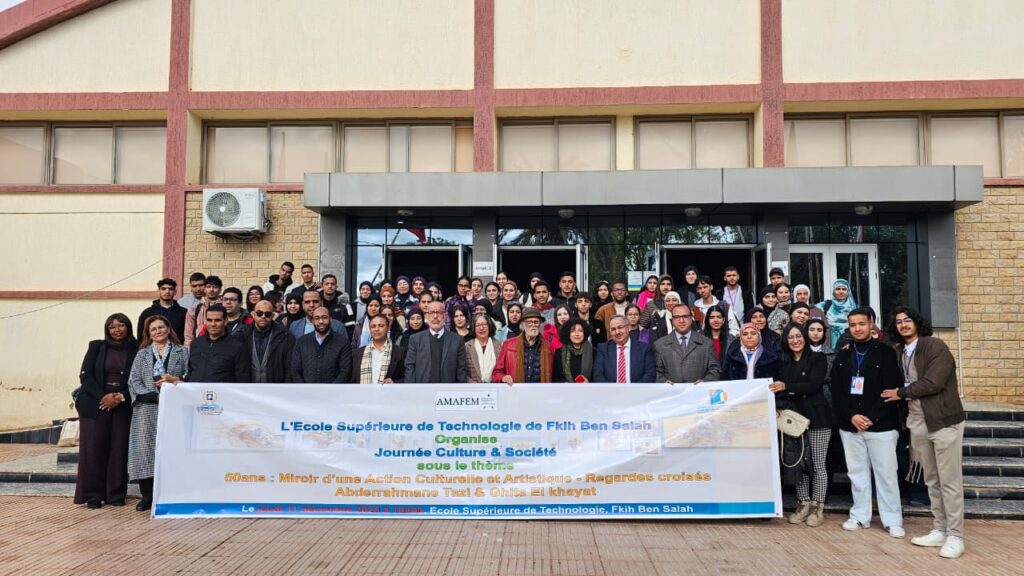 نظّمت المدرسة العليا للتكنولوجيا بالفقيه بن صالح، الخميس، ندوة فكرية وثقافية حول موضوع “الثقافة والمجتمع: 50 سنة مرآة لفعل ثقافي وفني ـ رؤى متقاطعة”. وشهدت الجلسة الافتتاحية حضور عدد من ممثلي السلطات المحلية والأطر الأكاديمية والإدارية، إلى جانب مسؤولين من مختلف المصالح الخارجية، وفاعلين سياسيين وجمعويين وثقافيين ونقابيين، إضافة إلى ممثلي وسائل الإعلام.