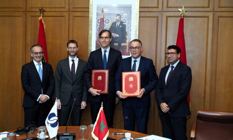 وقع المغرب والبنك الأوروبي لإعادة الإعمار والتنمية، أمس الجمعة بالرباط، اتفاقية تمويل بقيمة 150 مليون يورو (حوالي 1,617 مليار درهم) مخصصة لمشروع “الحفاظ على المياه في سهل سايس – سايس 3″، وذلك بحضور الوزير المنتدب المكلف بالميزانية فوزي لقجع، والنائب الأول لرئيس البنك الأوروبي غريغ غوييط، إلى جانب سفير المملكة المتحدة بالمغرب أليكس بينفيلد، الشريك في البرنامج عبر صندوق العمل المناخي للشراكة عالية التأثير.