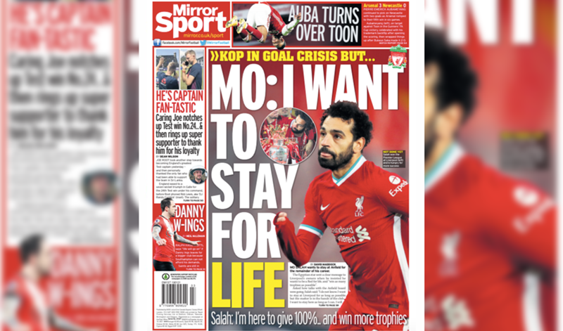 وضعت الصحيفة تركيزها على كلمات المصري محمد صلاح، والتي أكد خلالها على رغبته الاستمرار مع جماهير ليفربول التي تحبه.